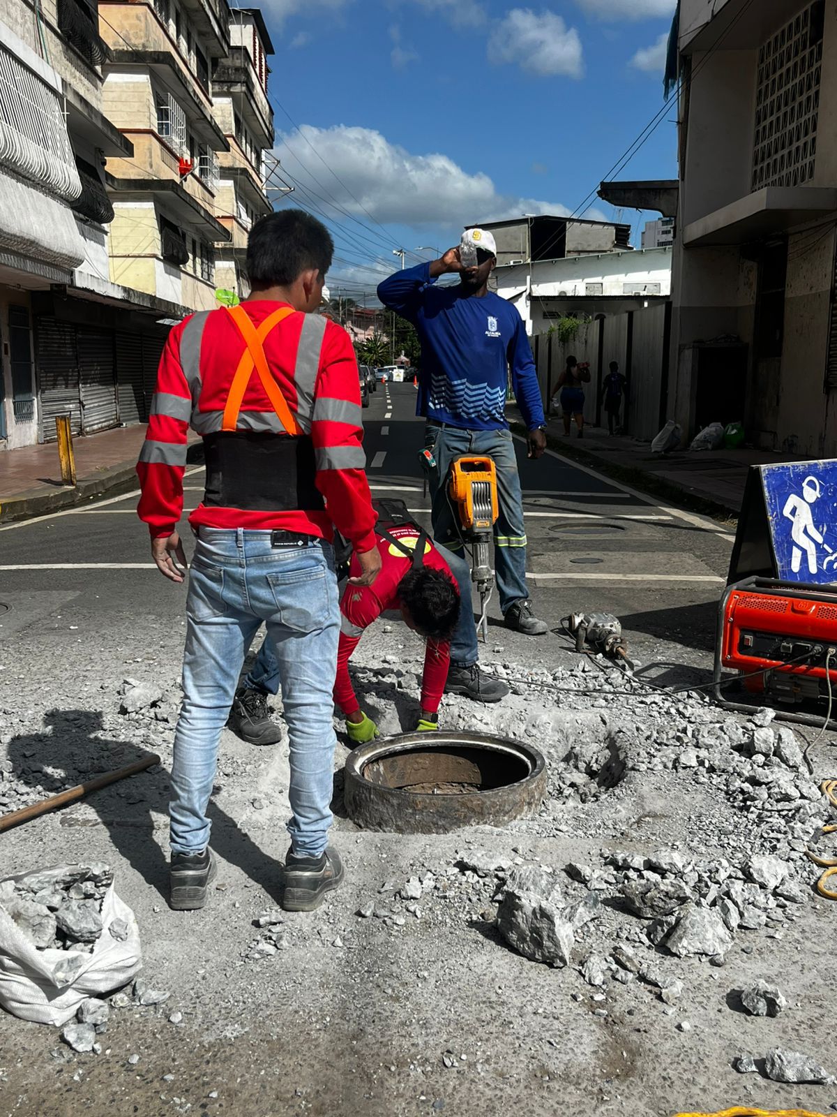 Las labores incluyen reemplazo de cajas y tapas de alcantarillas hechas con material reciclado y limpieza de cunetas.