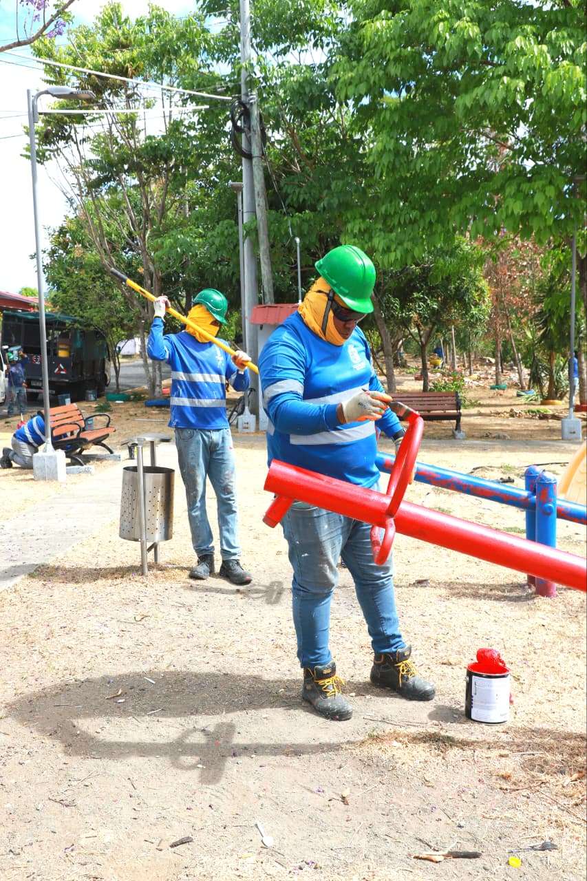 Personal de Gestión Ambiental a través del programa “DGA en tu comunidad”, realizó labores de pintura en canchas y parques, podas bajas, hidro lavados, recolección de escombros y desechos vegetales para embellecer áreas de uso común.