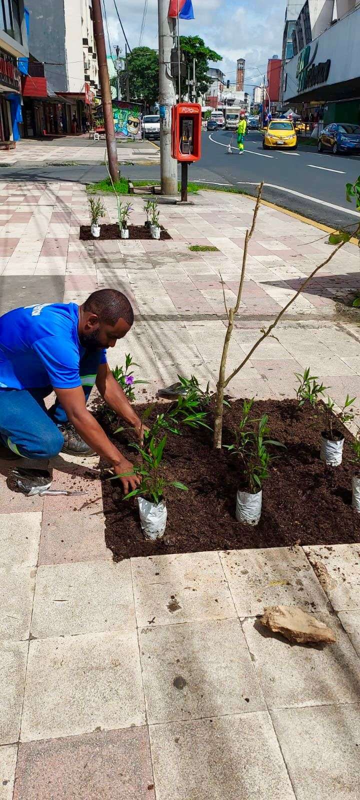 Mientras en el área de la avenida central en Calidonia, se monitorea el proyecto de arborización en las legendarias aceras de la arteria comercial, entre la plaza conocida como La Cuchilla y calle M.
