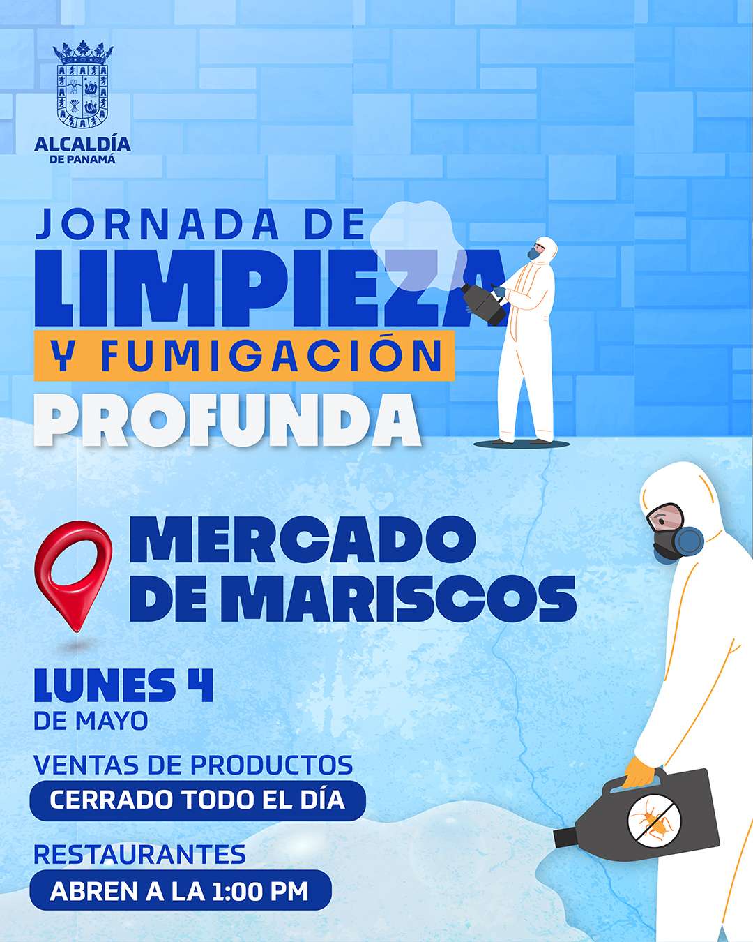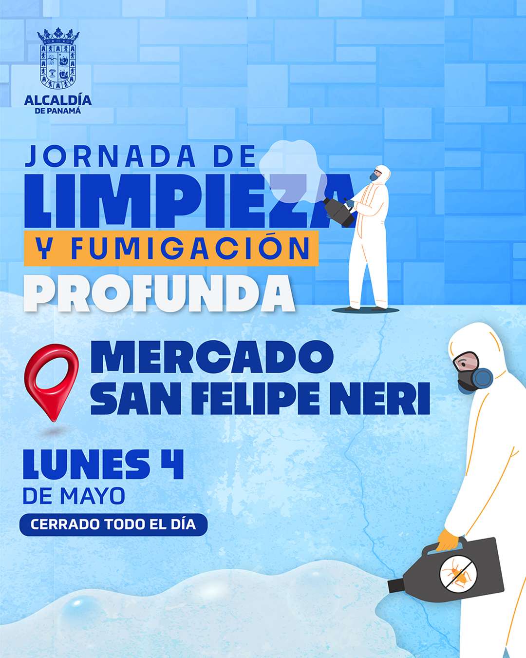 La Alcaldía de Panamá informa que este lunes 4 de mayo todas las instalaciones del Mercado de Mariscos y del Mercado San Felipe Neri cerrarán temporalmente ‘todo el día’ para recibir un tratamiento de limpieza profunda y fumigación.