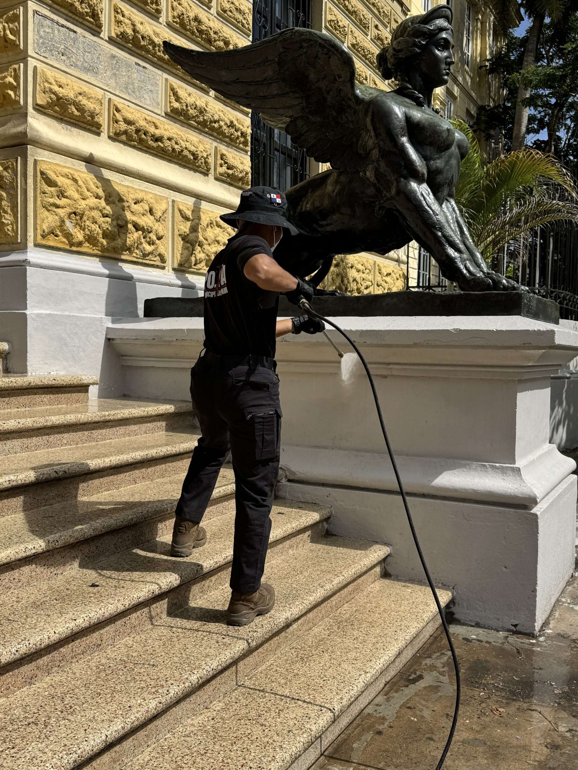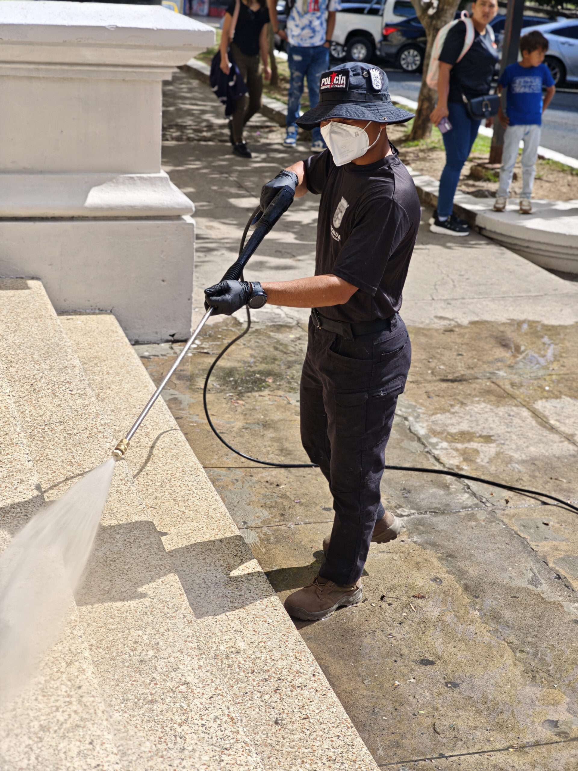 Policía Municipal apoya limpieza del Instituto Nacional previo al regreso a clases