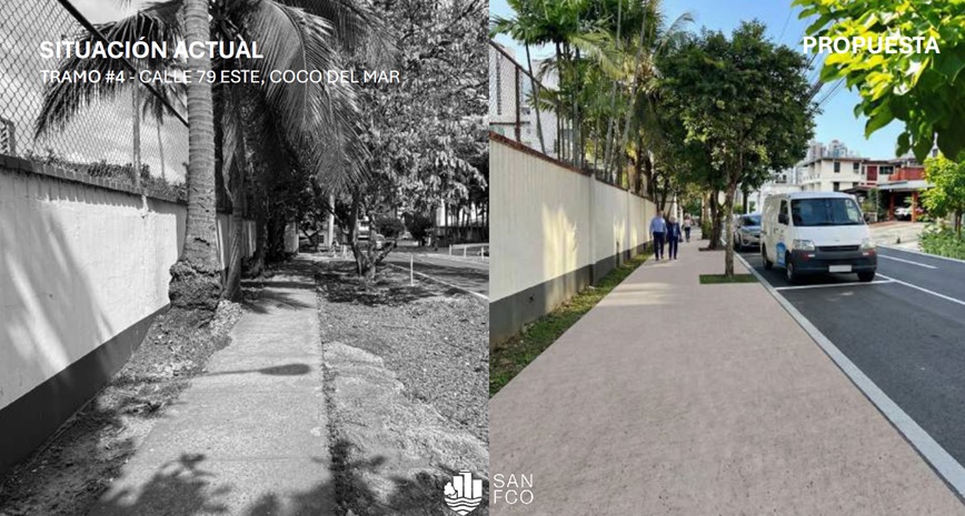 En el caso de Coco del Mar se busca aumentar y promover el desplazamiento peatonal, a través de establecer garantías para que este sea más seguro, al tiempo que pretende poner orden y formalizar el uso de espacios para estacionamiento vehicular en la ribera de la vía.