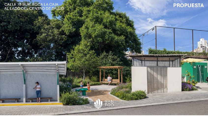 El proyecto de Boca La Caja, recupera un espacio de servidumbre que hoy está abandonado y se utiliza como “microvertedero”. En su lugar se pretende aprovechar para la construcción de un parque de Bolsillo, un cuarto de aseo y la mejora de la parada de autobuses.