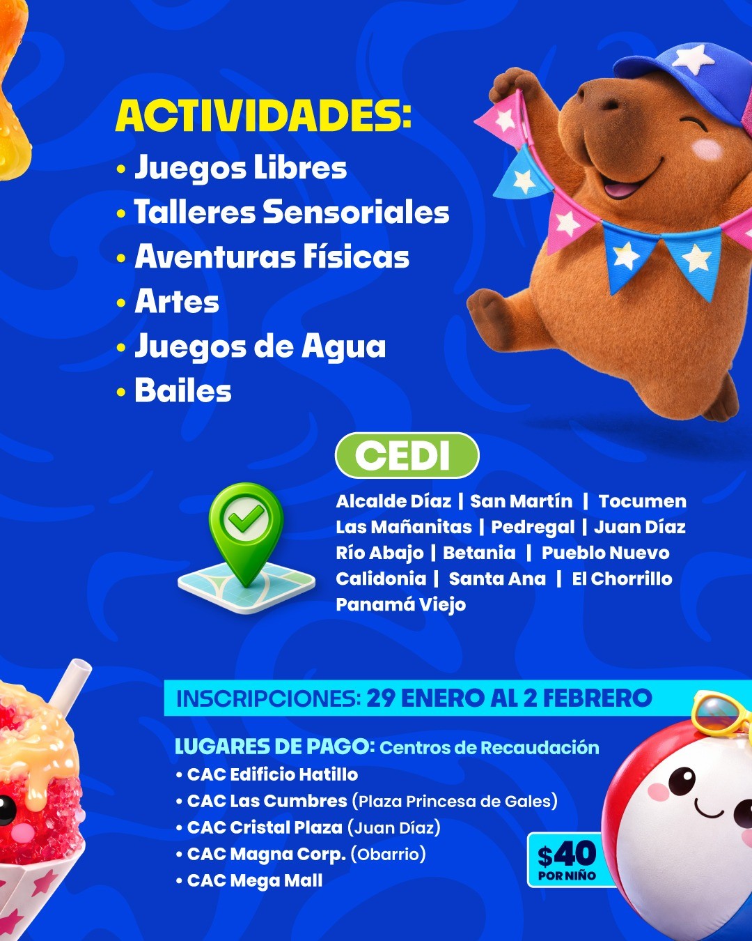 La Alcaldía de Panamá, a través de los Centros de Desarrollo Infantil (CEDI) de la Dirección de Gestión Social, pone a disposición de padres de familia y acudientes un programa de actividades extracurriculares para infantes de 1 a 6 años en sus 13 instalaciones.